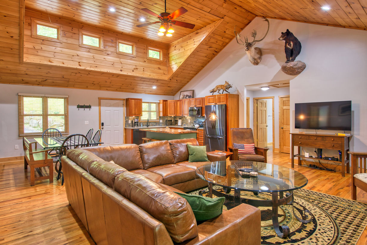 ENCHANTED ADVENTURES AWAIT IN MAGGIE VALLEY! This idyllic cabin is brimming with desirable features. You’ll feel your worries melt away and get the relaxation you need! The secluded 3-bedroom, 2.5-bath home boasts a tastefully decorated rustic interior equipped with Smart TV, a fully equipped kitchen, and in-unit laundry. Step outside and relax on the screened-in deck where you can cozy up by the fireplace with a book, or fire up the grill for a BBQ dinner!